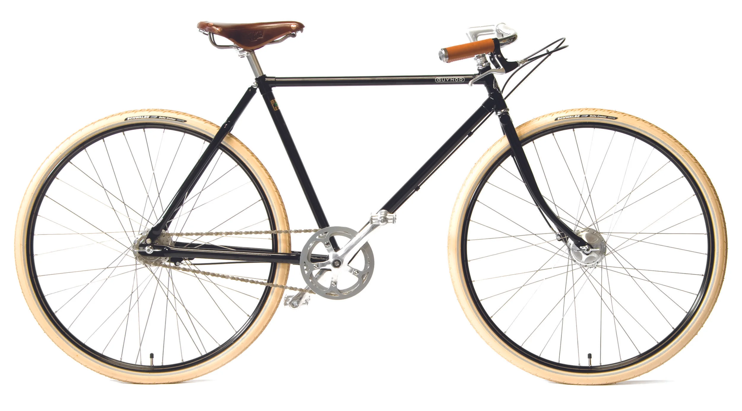 The Guvnor comes in Buckingham Black that boldly contrasts against the cream of the Schwalbe tyres which helps to create a striking bicycle that is a firm favourite with customers.